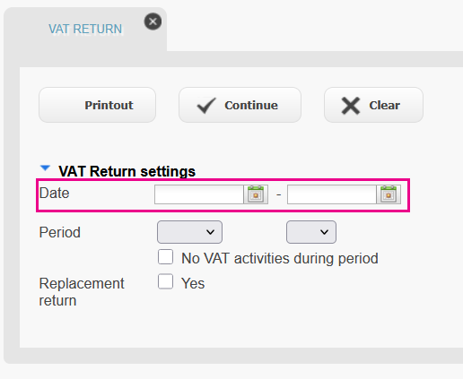Since VAT is calculated at the end of the period in the gross method, the reporting needs of the customer determine how the accounting periods should be established, either monthly or according to the VAT reporting period. If monthly reports are printed for the customer, the periods should be established monthly. In this case, VAT calculation should be done for each month to ensure that the reports are accurate. In order to send the VAT declaration directly to the tax authorities from Finago Modular Accounting, the monthly VAT calculations should be first deleted and then recalculated according to the reporting period. The VAT calculation for the specific reporting period can be done by filtering based on dates.