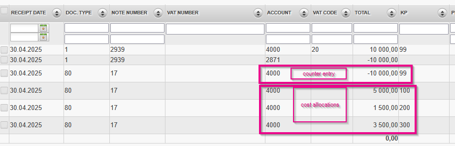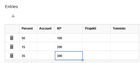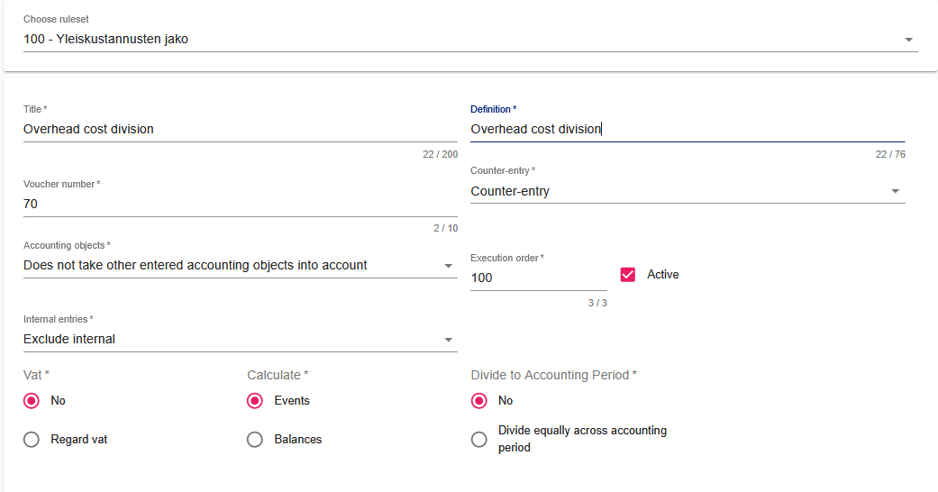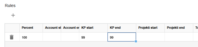 - NOTE! Entries must not contain accounting object information in the rule. Generally, only accounts are provided in the rules, but if accounting objects are given, consider the provided restrictions.
