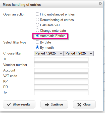 Note: If the accounting uses gross VAT processing, the VAT calculation must be done before starting the automatic entries.