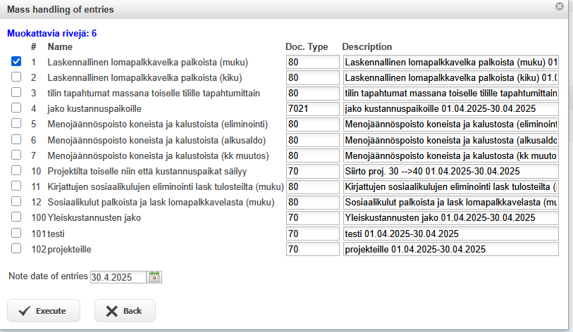 After the calculation, the automatic entries can be processed like regular entries and if necessary, they can be deleted and recalculated.