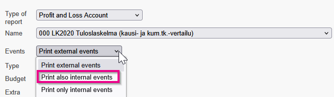 If automatic entries have been directed to an internal voucher type (for example 80), it should be noted in the report selection that internal transactions are also included in the reports.