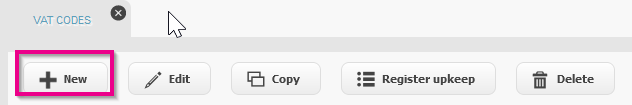 - In Register - VAT codes view click Register upkeep button