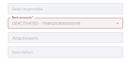 If a registry article is deactivated, but it has already been used in another registry record, the text deactivated will be displayed in the program. For example, a bank account deactivated on an invoice will appear like this: