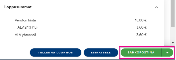 Lähetyspainikkeet ovat aktiivisina, jolloin myyntilaskun voi lähettää uudestaan.