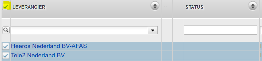 - Na het maken van een selectie kunnen de facturen worden geëxporteerd/naar het archief worden verplaatst door de box voor 'Leverancier' aan te vinken.